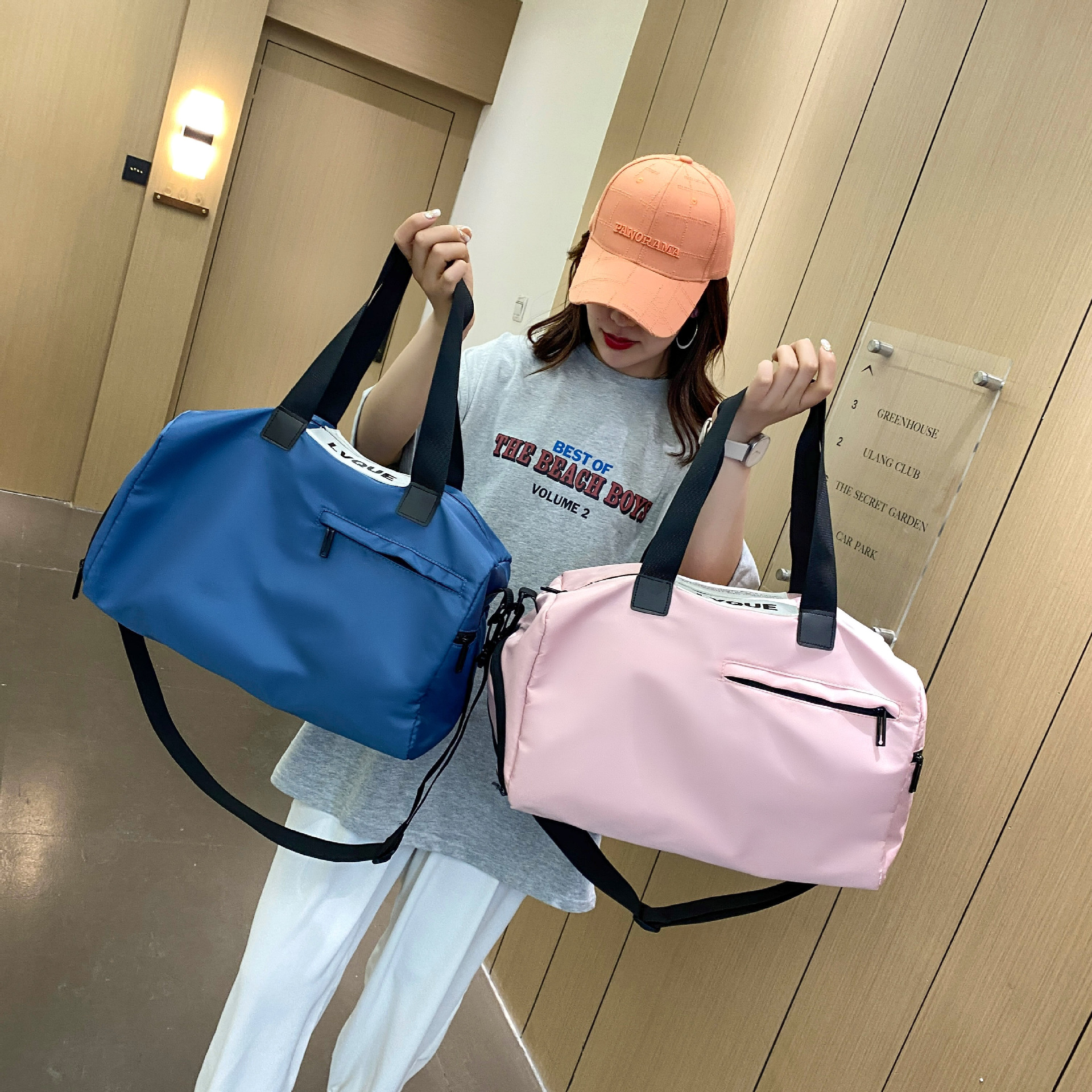 Büyük kapasiteli hafif seyahat çantası kısa geziler için fermuar kapatma spor Yoga Crossbody arabası çekme taşıma-on bagaj Unisex